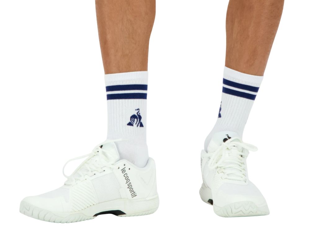 Носки Le Coq Sportif Performance Sports 1P - white/estate blue. Изготовлены из приятного на ощупь и комфортного материала. Толстые усиления вокруг пятки и пальцев обеспечивают большую долговечность, удобство при движении и оптимальную амортизацию. Верх отделан эластичными резинками, предотвращающими сползание. Рябчатые зоны из сетчатой панели увеличивают вентиляцию. Упаковка содержит 1 пару носков.