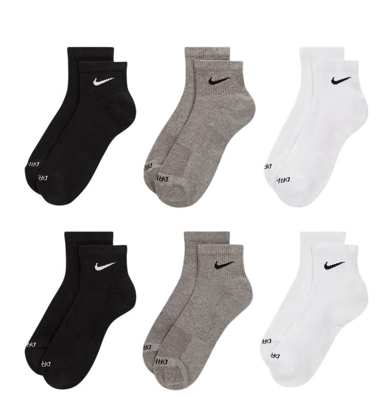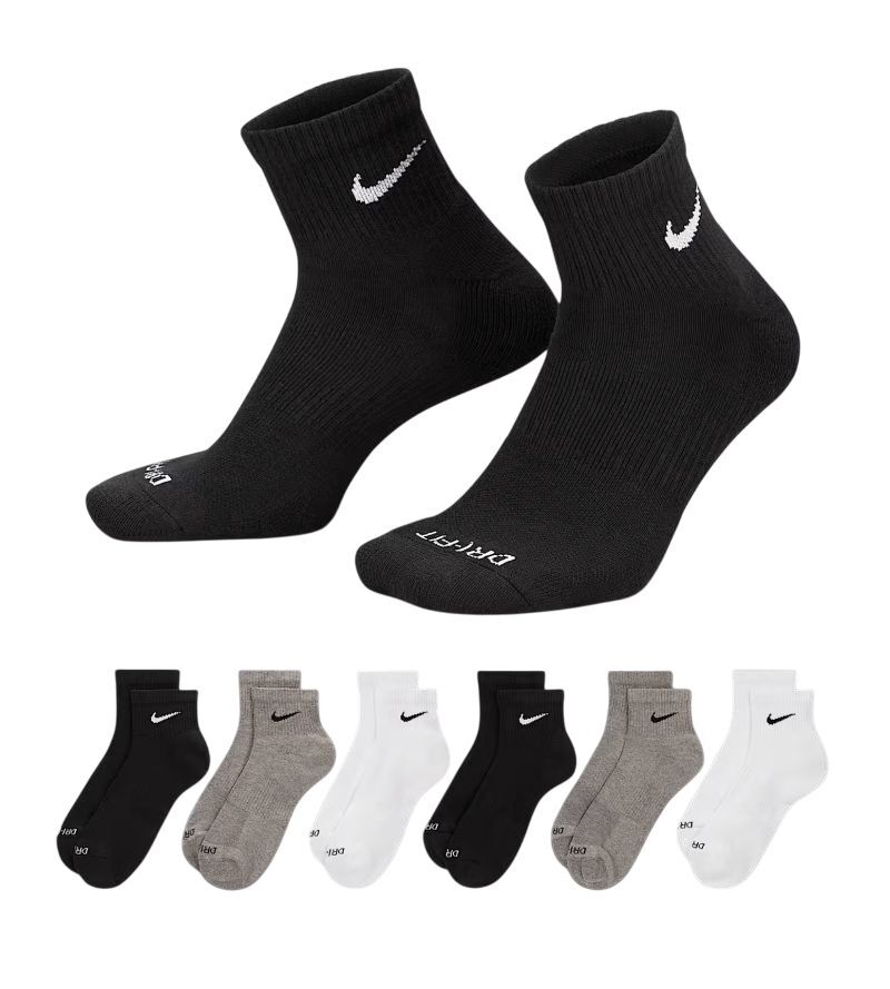 Носки Nike Everyday Plus Cushion Crew 6P - разноцветные. Высокий комфорт в любых условиях. Толстый хлопковый слой в области пятки и пальцев обеспечивает дополнительное удобство при движении и оптимальную амортизацию. Волокна во вкладыше предотвращают сползание носков. Верх выполнен с эластичными манжетами для лучшей посадки. Носки изготовлены из дышащего, быстро сохнущего материала с использованием технологии DRI-FIT. В упаковке три пары различных цветовых вариантов.