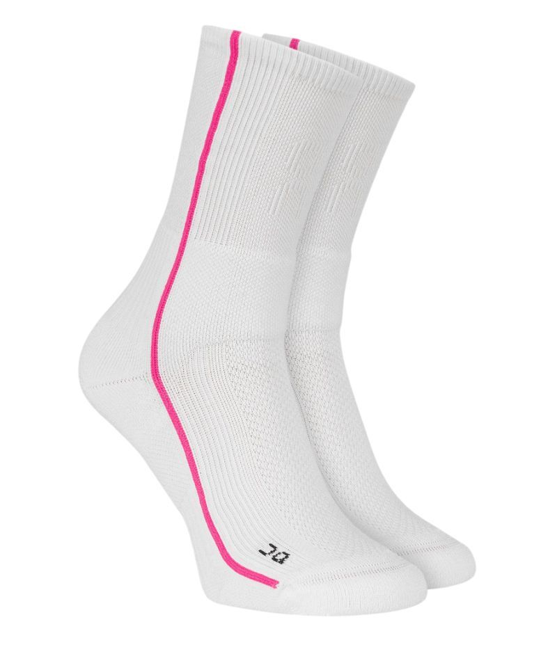Skarpety On Court High - white/pink. Разработаны специально для обеспечения максимальной защиты и комфорта во время активности. Анатомически адаптированы для правой и левой стопы с соответствующей маркировкой. Профилированный материал на пятках и усиления в области пальцев обеспечивают амортизацию ударов и необходимую прочность. Вентиляционные зоны предотвращают чрезмерное потоотделение. Зональная компрессия увеличивает поддержку свода стопы и голеностопа, а бесшовная конструкция снижает риск натираний и мозолей. В упаковке 1 пара носков.
