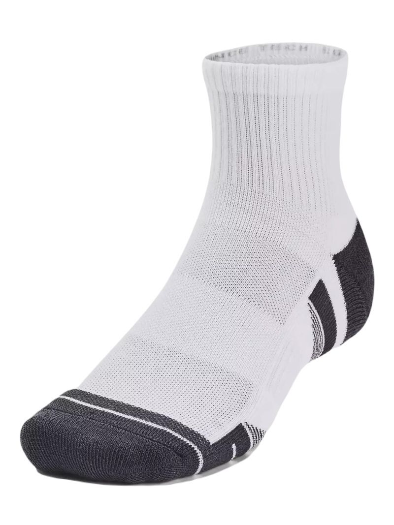 Носки Under Armour Performance Tech Quarter Socks 3-Pack - white/jet gray. Материал отводит влагу, обеспечивая сухость, легкость и вентиляцию. Стратегическое расположение амортизации для лучшей эластичности. Динамическая поддержка свода стопы уменьшает ее усталость. Вентиляционные каналы повышают воздухопроницаемость.