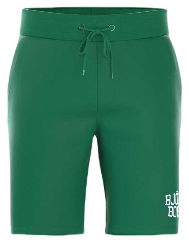 Мужские шорты Bj_rn Borg Essential Shorts - verdant green. Короткие спортивные шорты с широким, слегка эластичным поясом и шнурком для лучшего прилегания к фигуре. Два глубоких боковых кармана и один сзади. Логотип производителя на левой штанине. Подкладка из приятного на ощупь, теплого материала.