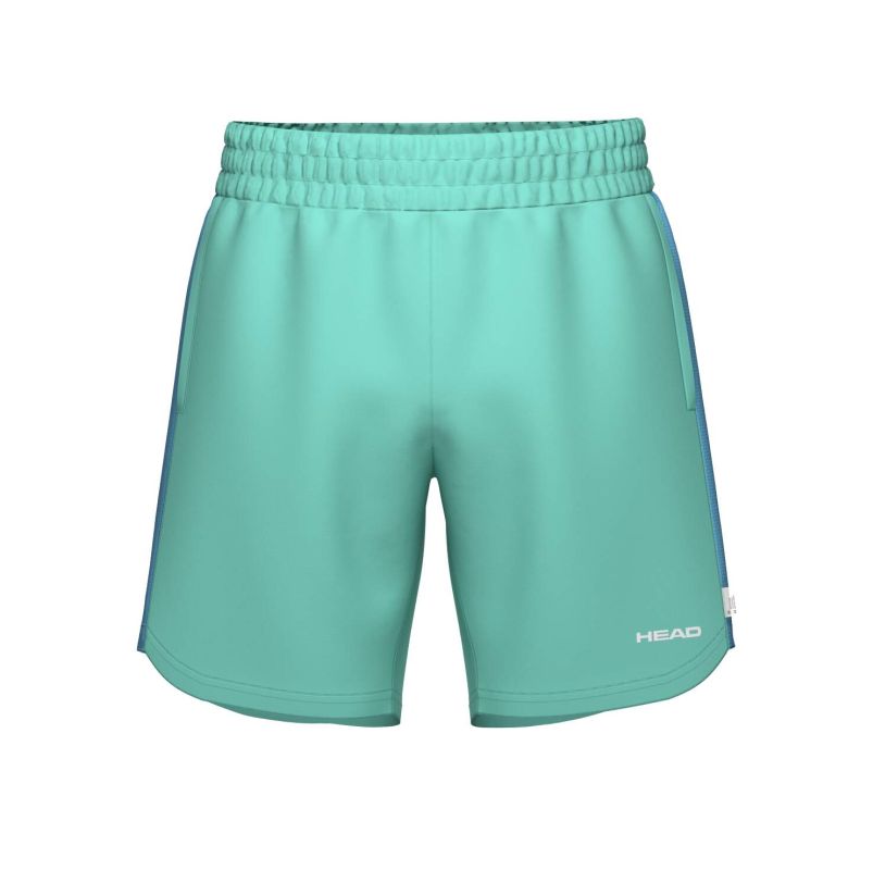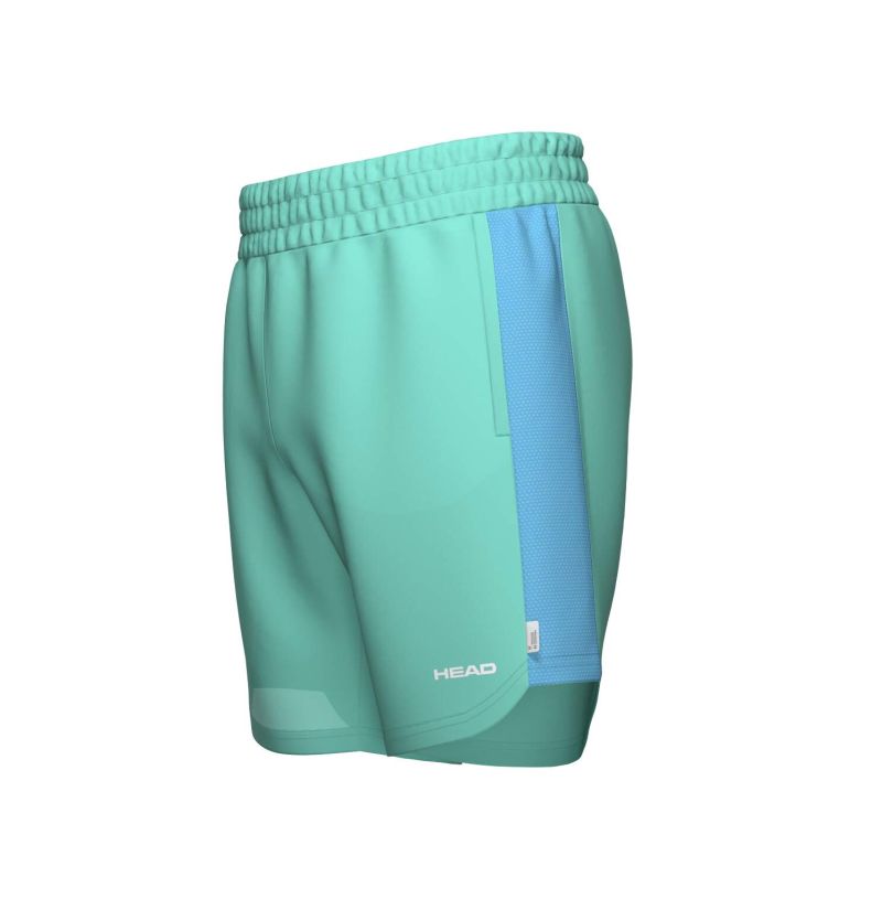 Мужские шорты Head Power - tourquoise/blue. Легкие и комфортные шорты простого, регулярного кроя. Эластичная резинка в поясе с внутренней регулировкой шнурками обеспечивает хорошую посадку по фигуре. Боковые зоны из mesh-панели и две открытые боковые карманы из сетки обеспечат отличную воздухопроницаемость и вентиляцию. Удлиненный задний край штанин гарантирует дополнительную защиту. Шорты изготовлены из эффективно отводящего влагу материала благодаря применению технологии MXM.