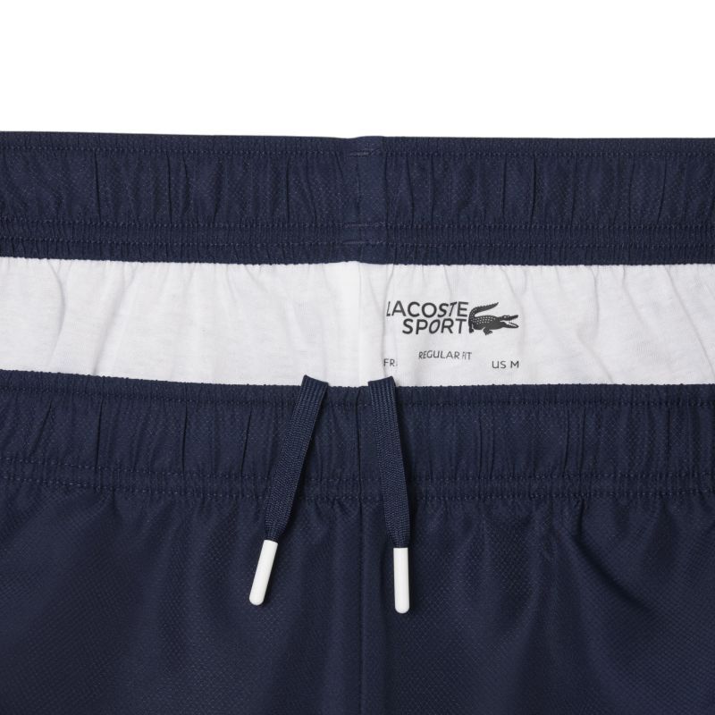 Мужские шорты Lacoste Printed Diamond Taffeta - blue navy/white. Легкие, дышащие шорты выполнены в простом, классическом крое. Резинка на поясе обеспечивает идеальную посадку по телу, что позволяет чувствовать свободу и комфорт при носке. Два боковых кармана с частично сетчатой и открытой конструкцией. Плоские швы минимизируют риск натирания и раздражений. Шорты имеют приятную на ощупь подкладку. Ноги украшены логотипом производителя. Шорты изготовлены из высококачественных материалов.