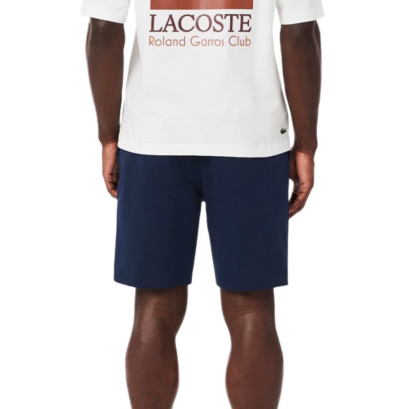 Мужские шорты Lacoste Roland-Garros Edition Fleece - midnight blue. Простые трикотажные шорты, выполненные в регулярном крое из 100% хлопкового материала. Широкая резинка в поясе со шнурками обеспечит хорошую посадку по фигуре, а также удобство ношения. Два боковых кармана с открытым доступом. Внизу голенища нашивка, отсылающая к производителю, и логотип Roland Garros. Высокое качество исполнения и используемых материалов.