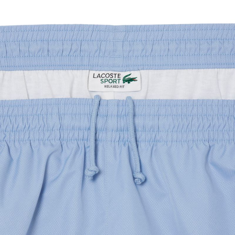 Мужские шорты Lacoste Sport Colourblock Panels Lightweight - light blue/navy blue/white. Классические короткие шорты с прямой штаниной и регулярным кроем. Внутренняя гладкая подкладка обеспечит высокий комфорт ношения. Два глубоких боковых кармана. Эластичная резинка в поясе вместе со шнурком позволит удобство и хорошую посадку по фигуре. Шорты выполнены из дышащего материала. Высокое качество исполнения и используемых материалов.