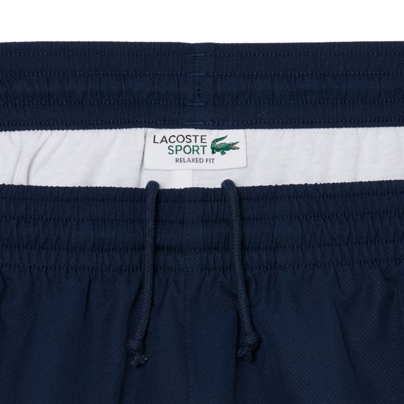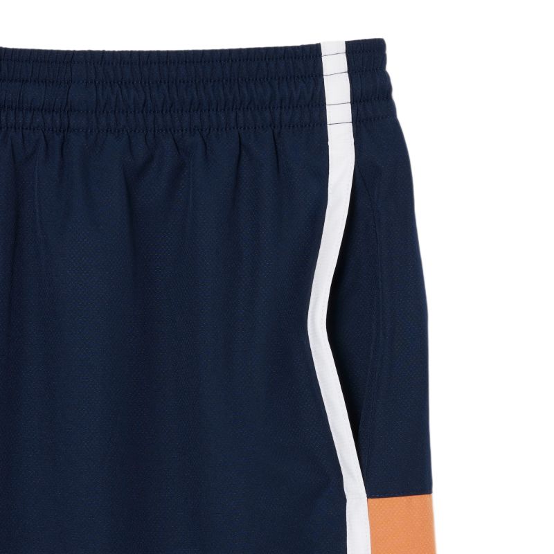 Мужские шорты Lacoste Sport Colourblock Panels Lightweight - navy blue/blossom/white. Классические короткие шорты с прямой штаниной и регулярным кроем. Внутренняя гладкая подкладка обеспечит высокий комфорт ношения. Два глубоких боковых кармана. Эластичная резинка в поясе вместе со шнурком обеспечит удобство и хорошую посадку по фигуре. Шорты изготовлены из дышащего материала. Высокое качество исполнения и используемых материалов.
