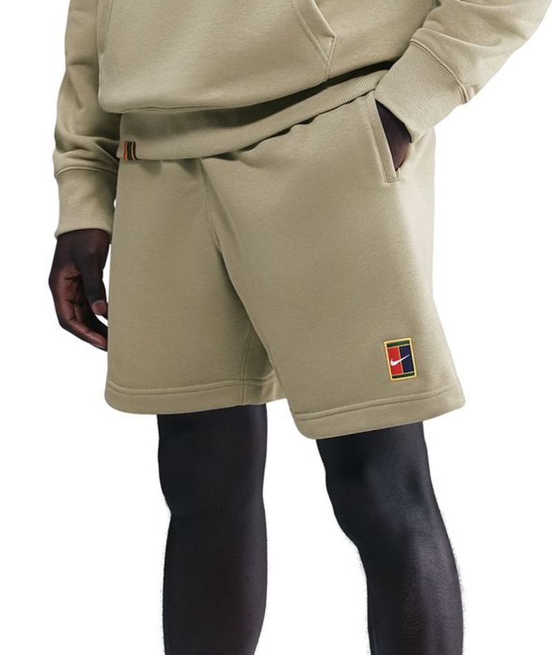 Мужские шорты Nike Court Heritage Dri-FIT Fleece Tennis - Steam. Короткие спортивные шорты, выполненные из мягкого полиэстерового и хлопкового материала. Резинка на поясе вместе со шнурками обеспечивает идеальную посадку по фигуре. Два открытых боковых кармана и один сзади с открытым доступом. Шорты выполнены в простом, классическом крое. Шорты украшены культовым логотипом Nike Court Heritage.