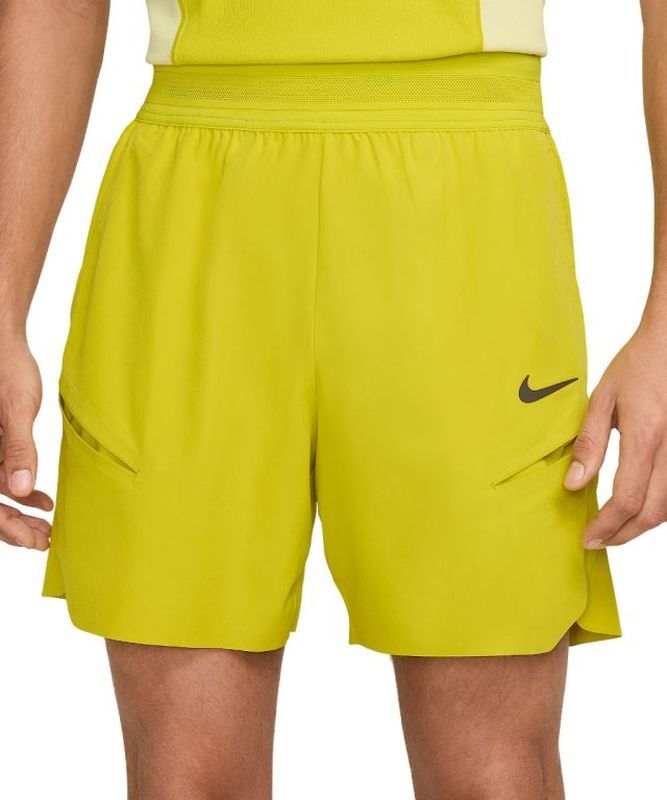 Мужские шорты Nike Court Slam Dri-Fit Tennis. Широкая эластичная резинка на поясе с регулировкой в виде внутренних шнурков обеспечит очень хорошее прилегание к фигуре. Два боковых кармана с внутренней сеткой для лучшей вентиляции. Разрезы внизу штанин обеспечивают больший диапазон и свободу движений. Бесшовная отделка штанин минимизирует риск натираний и раздражений. Шорты выполнены из дышащего материала, эффективно отводящего влагу, с применением технологии: DRI-FIT.