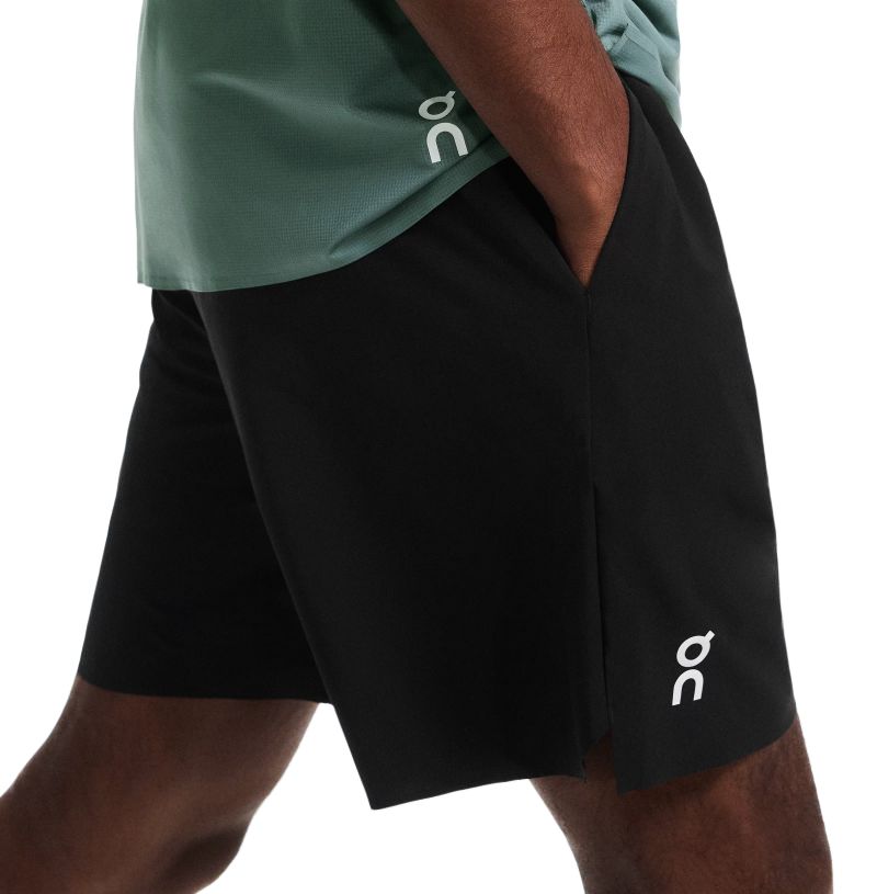 Мужские шорты On 7'' Court - black. Легкие шорты, выполненные в регулярном крое, обеспечат удобство ношения. Широкая, эластичная резинка в поясе вместе со шнурками хорошо приспособится к телу. Два глубоких боковых кармана с внутренней перфорацией для повышения воздухопроницаемости. Удлиненный задний край штанин и бесшовная отделка обеспечат высокий комфорт, а небольшая выемка — больший диапазон и свободу движений во время активности. Перфорации, расположенные по бокам и сзади шорт, обеспечат лучшую вентиляцию. Высокое качество исполнения и используемых материалов.
