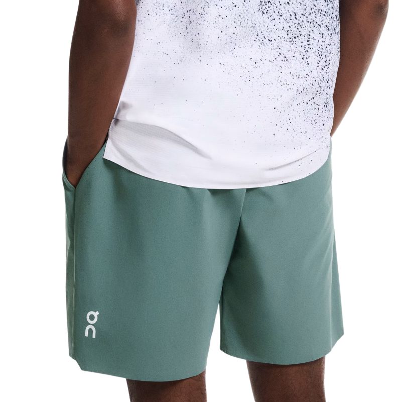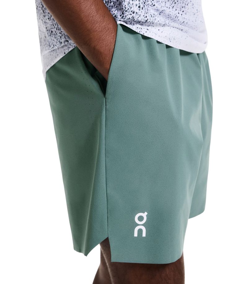 Мужские шорты On 7'' Court - tide. Лёгкие шорты, выполненные в регулярном крое, обеспечат удобство ношения. Широкая эластичная резинка в поясе вместе со шнурками хорошо подстроится к телу. Два глубоких боковых кармана с внутренней перфорацией для увеличения воздухопроницаемости. Удлинённый задний край штанин и бесшовное окончание обеспечат высокий комфорт, а небольшая выемка — больший диапазон и свободу движений во время активности. Перфорации, расположенные по бокам и сзади шорт, обеспечат лучшую вентиляцию. Высокое качество исполнения и используемых материалов.