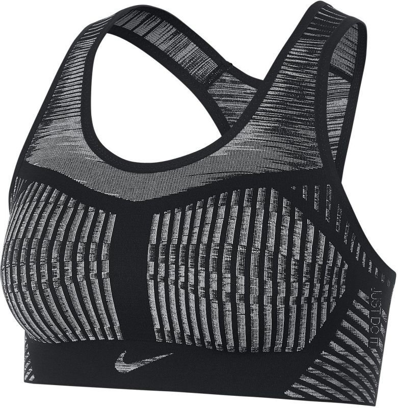 Женский теннисный бюстгальтер tenisowy Nike FE/NOM Flyknit Bra W - черный/белый. Мягкий, комфортный, не ограничивающий движения. Плоские швы защищают от натирания. Широкая резинка поддерживает грудь. Теннисный бюстгальтер не имеет вкладышей.