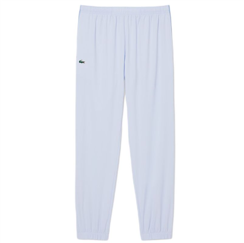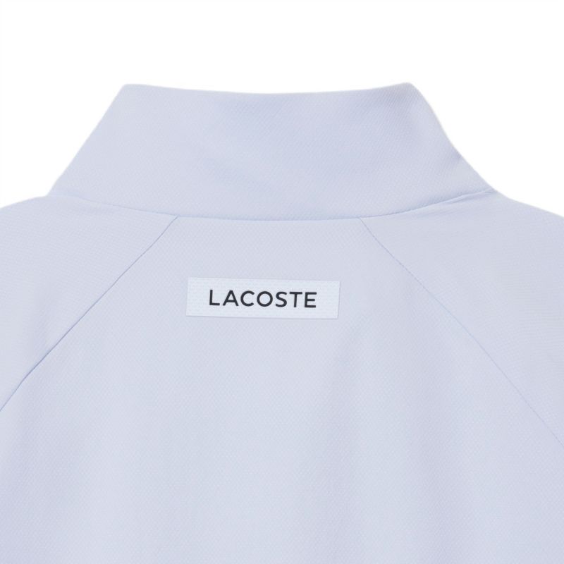Мужской теннисный костюм Lacoste Tennis Water-Repellent - light blue. Комплект свитера и штанов выполнен в простом, регулярном крое. Свитер застегивается на всю длину на молнию. Немного приподнятый воротник обеспечит комфорт и защиту. Для лучшего прилегания рукава и подол свитера завершены сборчатым эластичным материалом. Два боковых кармана на молнии с внутренней сеткой для лучшей вентиляции. Штаны имеют эластичную резинку в поясе с регулировкой шнурком. Два открытых боковых кармана. Манжеты штанов с эластичной резинкой и короткой боковой молнией для большего комфорта во время занятий. Костюм изготовлен с использованием технологии WATER REPELLENT.