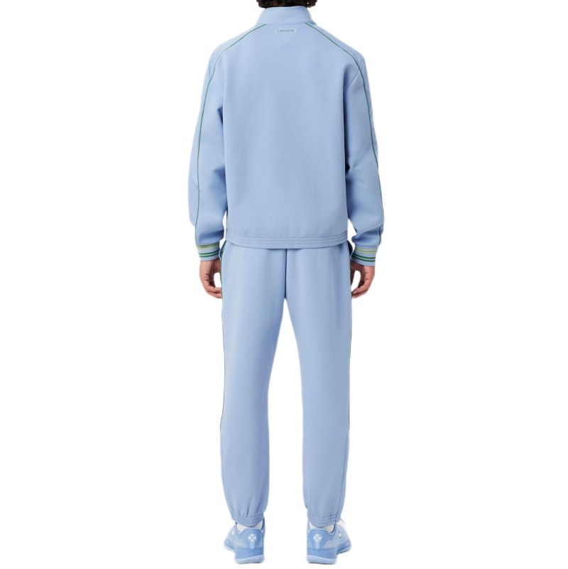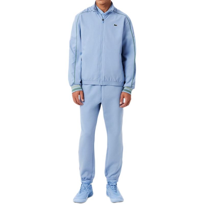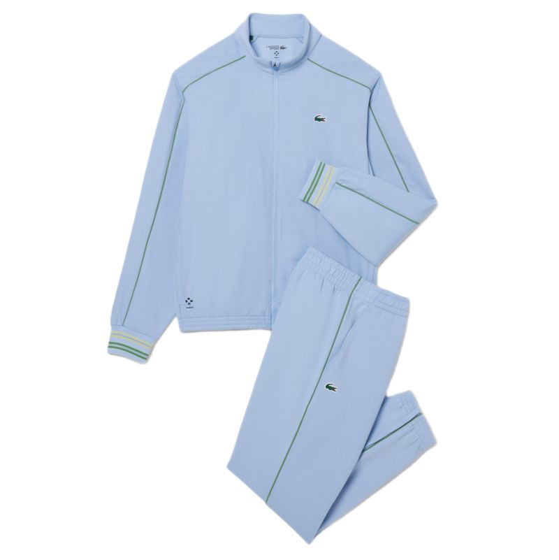 Мужской теннисный костюм Lacoste Tennis x Daniil Medvedev - aphylla. Легкий, спортивный костюм обычного кроя. Идеально подойдет для тренировок и физической активности, а также для повседневной носки. Кофта застегивается на всю длину на молнию. Два боковых кармана, закрывающихся на молнии. Рукава и низ кофты завершены резинками для идеальной посадки. Вставки из перфорированного материала обеспечат отличную вентиляцию, а высокий воротник обеспечит дополнительную защиту. Штаны имеют эластичный материал в поясе с регулировкой в виде шнурков для лучшей посадки. Два открытых боковых кармана. Низ штанин имеет резинки и возможность частичного расстегивания с помощью молний. Костюм выполнен из дышащего материала и украшен логотипом производителя и подписью Daniil Medvedev. Применена технология: BREATHABILITY.