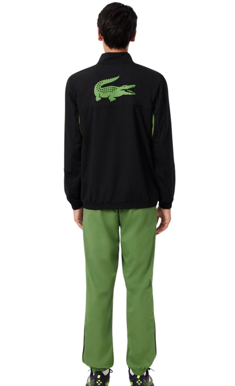 Мужской спортивный костюм Lacoste Tennis x Daniil Medvedev - black/green. Легкий, спортивный костюм регулярного кроя. Идеально подойдет для тренировок и физической активности, а также для повседневной носки. Куртка застегивается на всю длину на молнию. Два боковых кармана, закрываемых на молнии. Рукава и нижний край куртки завершены манжетами для идеальной посадки. Вставки из перфорированного материала обеспечат отличную вентиляцию, а высокий воротник - дополнительную защиту. Брюки имеют эластичный материал в поясе с регулировкой шнурками для лучшей посадки. Два открытых боковых кармана. Низ брюк с манжетами и возможностью частичного расстегивания на молниях. Костюм выполнен из дышащего материала и украшен логотипом производителя и подписью Daniil Medvedev. Применена технология: STRETCH.