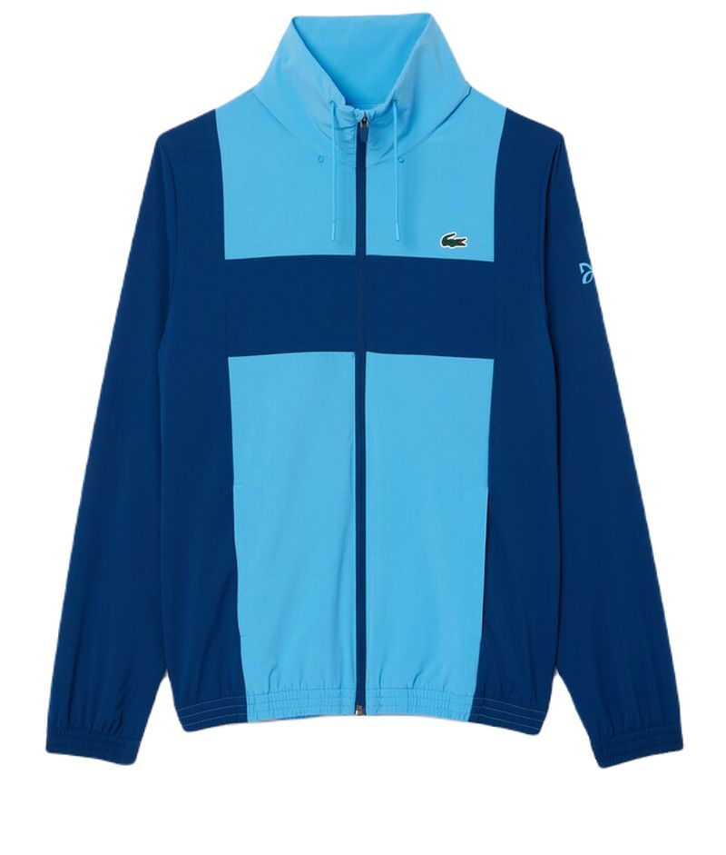 Мужской спортивный костюм Lacoste Tennis x Novak Djokovic - blue. Спортивный костюм, состоящий из комплекта худи и брюк, простого регулярного кроя. Изготовлен из прочной и элегантной полиэстеровой тафты. Отсутствие внутренней подкладки делает материал легким, дышащим и эффективно отводящим влагу. Худи застегивается на всю длину на молнию и имеет два закрытых боковых кармана с внутренней сеткой. Повышенный воротник с шнурковыми кулисками обеспечит дополнительную защиту. Рукава и нижний край завершены эластичными манжетами, что позволит индивидуально подогнать. Брюки оснащены эластичным поясом, регулируемым шнурками. Имеют два открытых боковых кармана и штанины, завершенные манжетами. Костюм из коллекции, подготовленной специально для Novaka Djokovica, и отлично подойдет как для активностей, так и для повседневного использования. Применены технологии: ULTRA DRY, STRETCH.