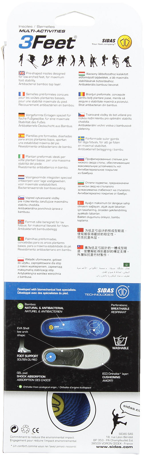 Вставки с современной конструкцией: двойные подкладки под пяткой, специальный поддерживающий элемент свода стопы и пена EVA обеспечивают хорошую амортизацию, положение и поддержку стопы, а также максимальную стабильность. Эти вставки готовы к использованию и адаптируются к стопе во время использования. У них есть под пяткой амортизирующий элемент и защищают свод стопы от усталости. Вставки из линии 3Feet предназначены для самостоятельного подрезания до необходимой формы.