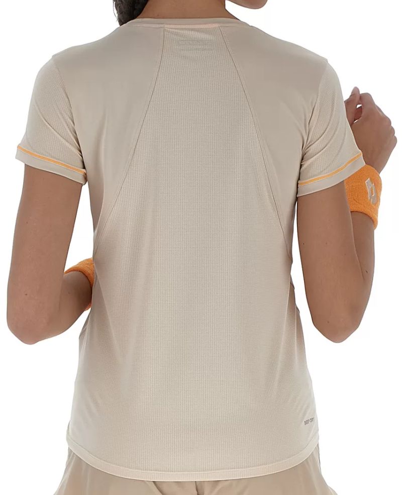 Женская теннисная футболка Lotto Tech II D3. Лёгкий, эластичный материал хорошо прилегает к телу, обеспечивая высокий комфорт во время активности. Задняя часть и рукава выполнены из микро-перфорированного материала, гарантируя оптимальную вентиляцию. Разрезы по бокам обеспечивают больший диапазон движений, а удлинённая задняя часть — дополнительную защиту. Плоские швы минимизируют риск натираний и раздражений. Футболка выполнена из дышащего, эффективно отводящего влагу материала с применением технологии: DEEP DRY.