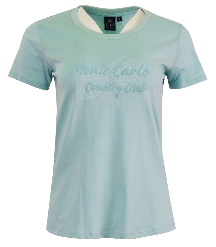 Женская теннисная футболка Monte-Carlo Country Club Racquets Print - torquoise. Классическая, простая T-shirt с регулярным кроем. Выполнена на 100% из хлопкового материала, обеспечит высокий комфорт использования. В центральной части графический мотив, отсылающий к Monte-Carlo Country Club. T-shirt идеально подойдет как на корте, во время тренировки, так и в повседневном использовании.