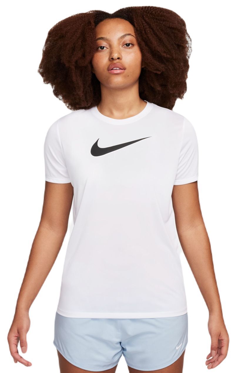Женская теннисная футболка Nike Dri-Fit Graphic T-Shirt - белая. Изготовлена из легкого, приятного на ощупь материала. Слегка эластичная ткань подстраивается под тело, обеспечивая свободу движений, а удлиненная спинка увеличивает защиту и комфорт во время активности. Логотип производителя размещен в центральной части. Футболка выполнена из дышащего материала с применением технологии DRI-FIT.