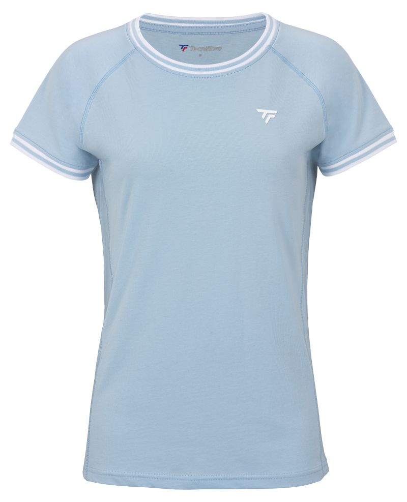 Женская теннисная футболка Tecnifibre Team Stretch - glacier. Легкая простая футболка, выполненная с высоким содержанием хлопка, обеспечит очень хороший комфорт при ношении. Материал с легкой эластичностью хорошо прилегает к телу, гарантируя свободу движений. Рельефные эластичные манжеты рукавов и воротник обеспечат лучшее прилегание и удобство использования. Плоские швы минимизируют риск натираний и раздражений. Минималистичное logo производителя с левой стороны.