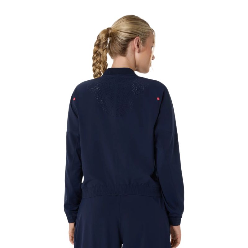 Женская куртка Asics Match - midnight. Легкая спортивная куртка регулярного кроя. Застёгивается на всю длину на молнию. Вставки с перфорацией спереди и сзади, а также боковые панели из сетчатой ткани обеспечат отличную воздухопроницаемость. Манжеты и нижний край куртки с резинками позволят хорошо прилегать к фигуре. Два боковых кармана с открытым доступом. Куртку изготовили из комфортного материала, который отлично подстраивается под движения спортсменки и эффективно отводит влагу благодаря технологии DRY.