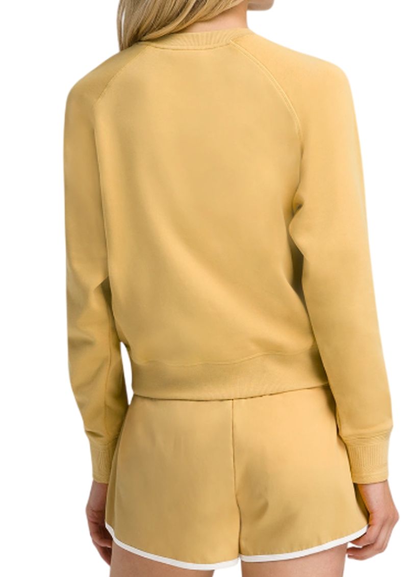 Женская толстовка Wilson Sideline Crew - golden. Спортивная толстовка со свободным, укороченным кроем. Выполнена из приятного на ощупь и комфортного материала. Сочетание хлопка с полиэстером обеспечивает удобство в использовании. Манжеты и нижняя часть отделаны резинками, обеспечивающими очень хорошую посадку по фигуре. Большой графический мотив, отсылающий к бренду производителя, размещен в центральной части. Высокое качество исполнения и используемых материалов.