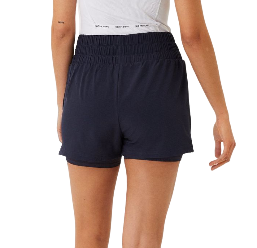 Женские шорты Bj_rn Borg Ace - night sky. Широкий эластичный пояс позволяет хорошо прилегать к фигуре. Встроенные внутренние спортивные шорты из ребристого материала. Два вместительных боковых кармана. Шорты изготовлены из дышащего материала с хорошим отведением влаги с применением технологий HYDRO-PRO и PERFECT FIT.