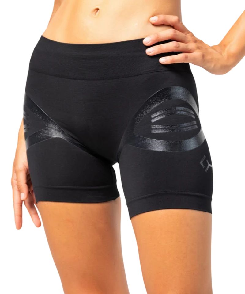Женские шорты Floky Biomechanical Performer - black. Performer это первые такие биомеханические шорты, созданные для предотвращения спортивной грыжи, а также для улучшения баланса между передней и задней частью тела. Постепенная компрессия и стратегически расположенные силиконовые полосы обеспечат стабильность мышц, уменьшат риск возникновения воспалений и ускорят регенерацию после тренировки. Короткие шорты с широким рифленым эластичным поясом очень хорошо подойдут к телу, обеспечивая удобство ношения. Ножки завершены дополнительным швом, чтобы еще больше увеличить прилегание и комфорт во время активности. Силиконовые аппликации на ягодицах гарантируют поддержку и активацию мышц, уменьшая нагрузку на сухожилия. Боковые полосы стабилизируют тазобедренный сустав, предотвращая воспаления и улучшая мобильность. Высшая качество исполнения и используемых материалов. Шорты выполнены из дышащего материала, а плоские швы минимизируют риск натираний и раздражений.
