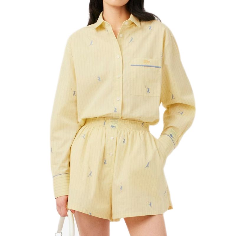Женские шорты Lacoste Cotton Poplin Boxer - yellow/blue. Короткие шорты, выполненные из 100% хлопкового материала, который обеспечит удобство и комфорт носки. Широкая эластичная резинка в поясе вместе с регулировкой в виде шнурков позволит добиться очень хорошей посадки по фигуре. Деликатные разрезы в нижней части штанин увеличивают диапазон движений. Два открытых боковых кармана. Высокое качество исполнения и используемых материалов.