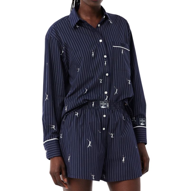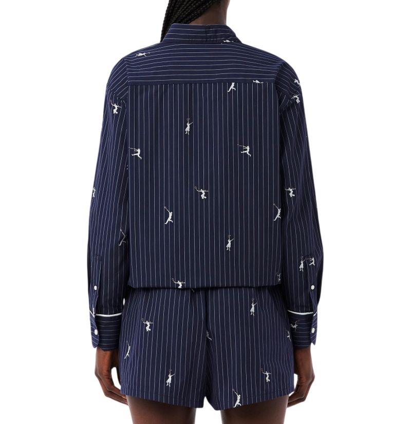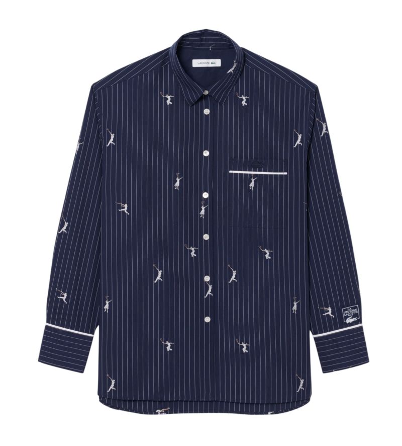 Женское поло Lacoste Oversized with Jacquard Motifs - navy blue/white. Выполнена в стандартном крое, застегивается на пуговицы по всей длине. Мягкий и приятный на ощупь 100% хлопковый материал обеспечит высокий комфорт носки. Легко приподнятый воротник добавит элегантности. Вышитые узоры в теннисной графической теме на всей поверхности позволят выделиться каждому фанату белого спорта. Дополнительный карманчик на левой груди. Высокое качество исполнения и используемых материалов.