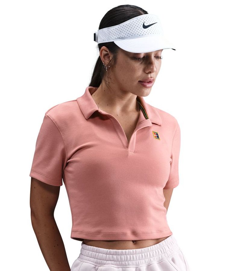 Женское поло Nike Court Heritage Tennis - red stardust. Короткое приталенное поло из мягкого хлопкового материала обеспечит высокий комфорт во время ношения. Вырез в форме буквы V повысит удобство использования. Материал с лёгкой эластичностью хорошо облегает тело, обеспечивая свободу движений. Знаменитый логотип Nike Heritage слева.