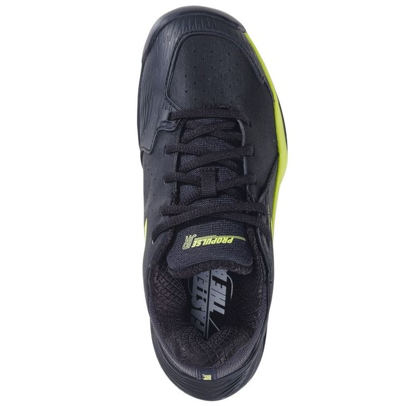 Детские теннисные кроссовки Babolat Propulse Junior 3 All Court - black/aero. Самая прочная, стабильная и поддерживающая игру юниорская модель обуви Babolat. Обеспечит амбициозным и требовательным молодым игрокам сочетание производительности, комфорта и долговечности, позволяя на 100% сосредоточиться на игре. Ремень Power Belt действует как «ремень безопасности», стабилизируя среднюю часть стопы при резких боковых движениях. Защита передней части обуви дополнительно защищает стопы, а толстая средняя подошва из пены EVA отлично амортизирует и защищает область пятки от ударов. Прочная внешняя подошва Michelin Performance также обеспечивает очень хорошее сцепление. Универсальный протектор с системой non-marking подходит для игры на различных покрытиях.
