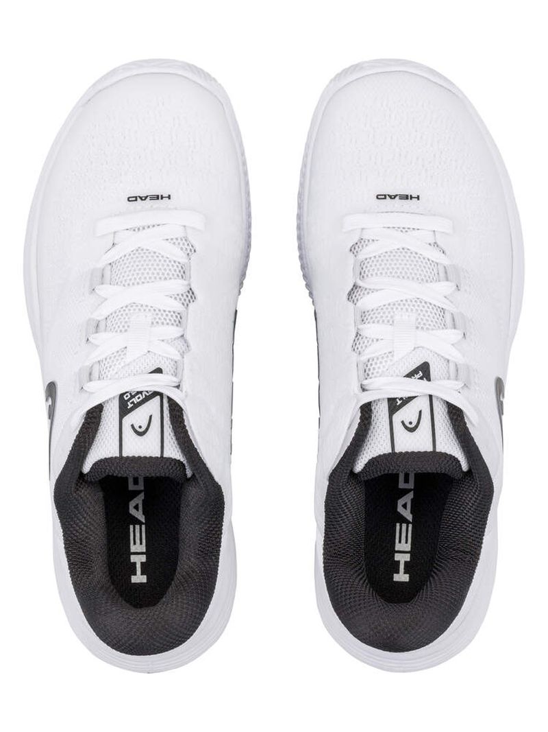 Детские теннисные кроссовки Head Revolt Pro 5.0 Clay - white/black. Точные копии взрослой модели кроссовки обеспечивают юниорам, агрессивно перемещающимся по корту, сочетание высокой прочности, отличной стабильности и еще большего комфорта. Формованная полиуретановая верхняя часть имеет больше материала в зонах, требующих дополнительной защиты при скольжениях, и меньше в остальных, что позволило снизить вес при сохранении оптимальной гибкости и долговечности. Интегрированные усиления LATERAL CONTROL повышают поддержку в торсионной плоскости, а ремни LOCKDOWN STRAPS, связанные с системой шнуровки, дополнительно увеличивают стабильность и обеспечивают лучшее прилегание. Пенообразная промежуточная подошва EVA гарантирует отличную амортизацию. Внешняя подошва из цепкой и износостойкой резины HYBRASION+ имеет протектор в виде еловой ветки для игры на грунтовых кортах.