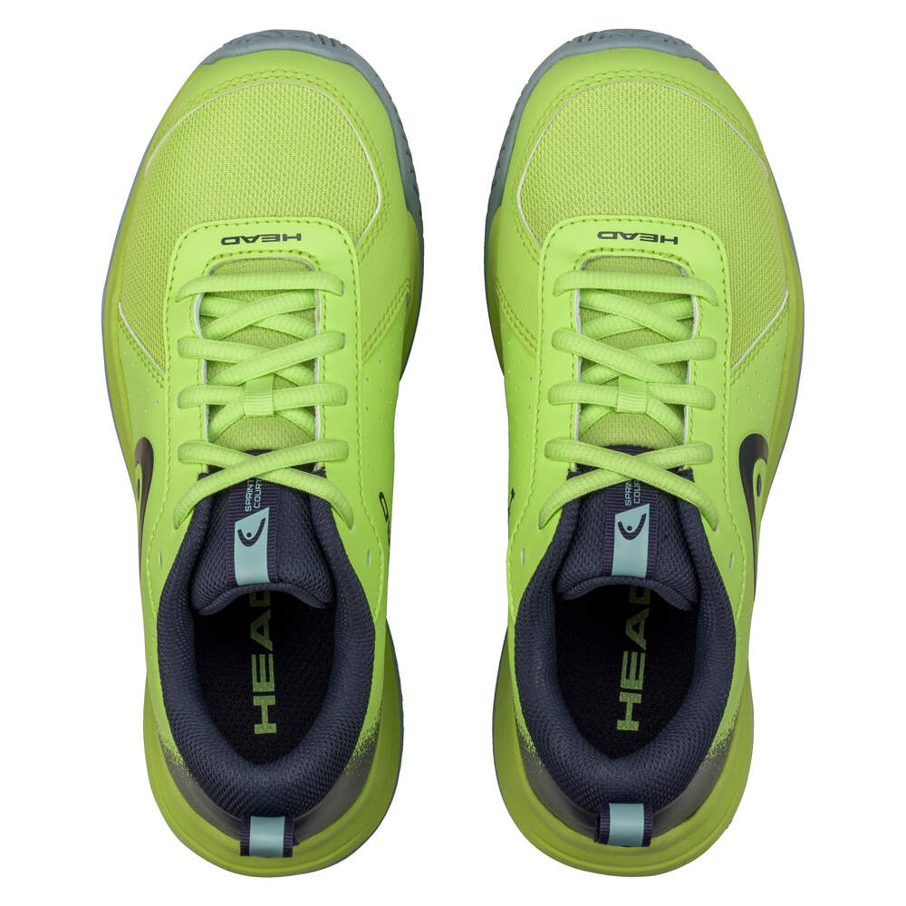 Детские теннисные кроссовки Head Sprint Court 4.0 - lime/navy. Легкая и дышащая модель, предлагающая юным теннисистам сочетание комфорта и производительности с эффектным стилем. Верх, выполненный преимущественно из прочной сетки, обеспечивает отличную вентиляцию, что обеспечивает высокий комфорт игры. Усиленные боковины из TPU, поддерживаемые слегка выступающим краем подошвы LATERAL CONTROL, повышают стабильность, особенно при боковых движениях. Универсальная внешняя подошва из износостойкой резины HYBRASION+ подходит для всех типов покрытий и оснащена системой non-marking. Кроссовки имеют классическую систему шнуровки.