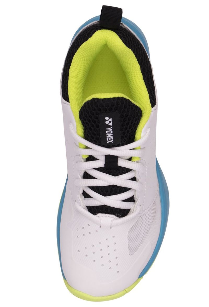 Детские теннисные кроссовки Yonex Power Cushion Lumio Jr - white/turquoise. Обладают прочной и долговечной конструкцией, которая одновременно гарантирует комфорт носки. Многочисленные швы усиливают структуру обуви. Примененный материал обеспечивает хорошую стабилизацию и поддержку стопы, а также легче, чем в предыдущих версиях. Сетчатые зоны вентиляции и язычок, частично выполненный из mesh-панели, повышают воздухопроницаемость. Универсальную подошву оснастили системой non-marking, благодаря чему не оставляет следов на твердых покрытиях. Применены следующие технологии: ENDURANCE RUBBER.