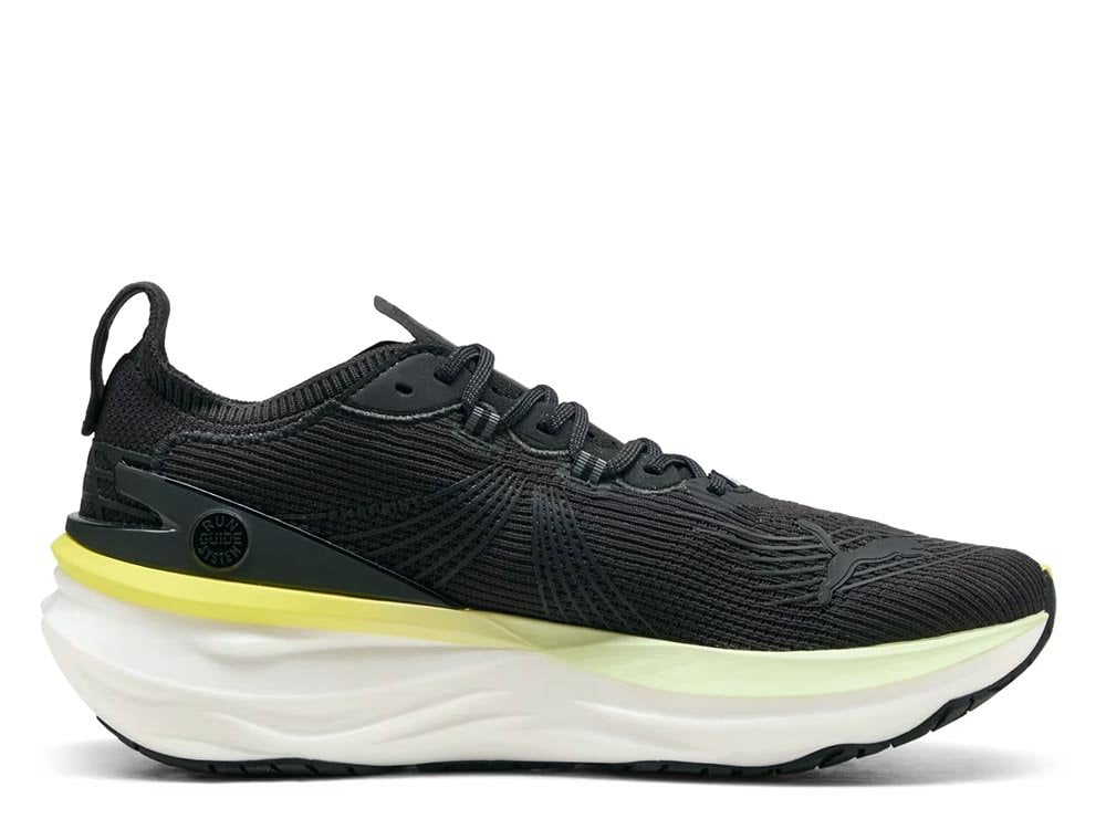 Трикотажная верхняя часть обуви особой конструкции идеально прилегает к стопе, обеспечивая комфорт и поддержку во время бега, а вывернутый воротник дополнительно стабилизирует лодыжку. Кроме того, экологический подход бренда Puma обеспечивает, что верх выполнен минимум на 30% из материалов из переработки.