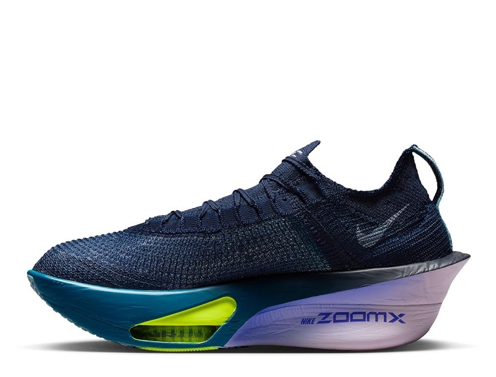 В третьей версии Alphafly изменился внешний вид, подчеркивающий большую динамику. Подошва была унифицирована, соединенная таким образом пена ZoomX дает отличную стабильность и амортизацию, что повышает комфорт во время бега. Две газовые подушки Air Zoom в передней части обуви вместе с пеной ZoomX увеличивают возврат энергии при каждом шаге. Также есть полноразмерная, немного более широкая пластина из углеродного волокна - Flyplate. Она обеспечивает максимальную динамику и уверенное, плавное выполнение шагов даже в самом интенсивном беге.