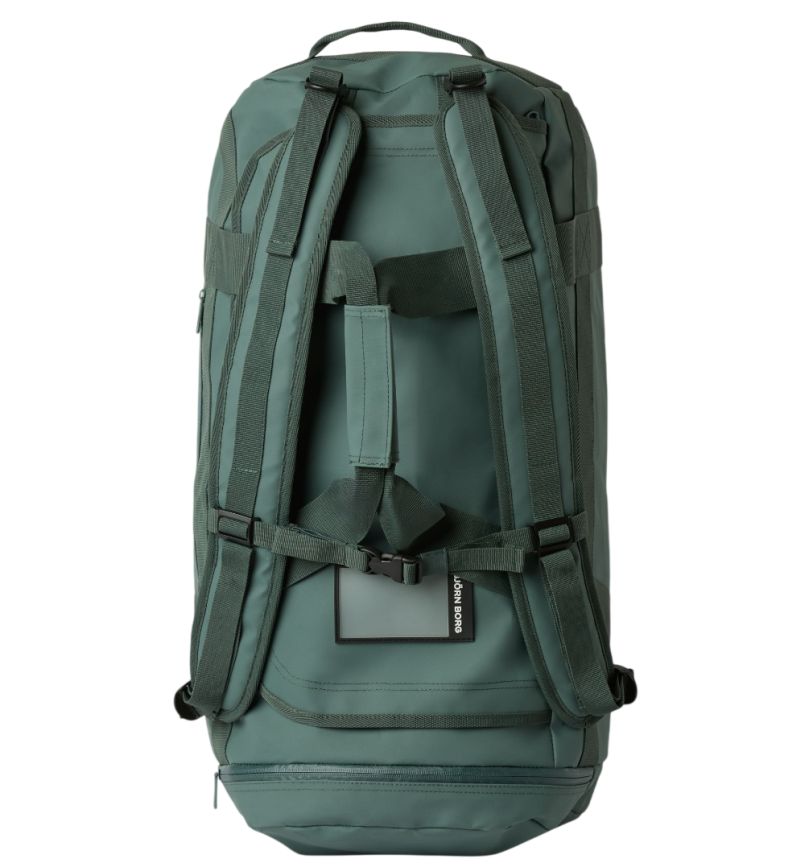 Спортивная сумка Bj_rn Borg Duffle (55L) - balsam green. Просторная, практичная сумка современной конструкции, вдохновленной военным стилем. Изготовлена из прочного полиэстрового материала с покрытием TPE. Имеет вместительную главную камеру, застегивающуюся на молнию. Дополнительная камера для обуви или мокрой одежды, закрывающаяся на молнию, расположена сбоку сумки. Спереди маленький карман для хранения аксессуаров. Сумку оснастили ручками для переноски в руке и двумя регулируемыми комфортными лямками с возможностью ношения в форме рюкзака. Сумка в комплекте поставляется с маленьким чехлом, облегчающим хранение и переноску.