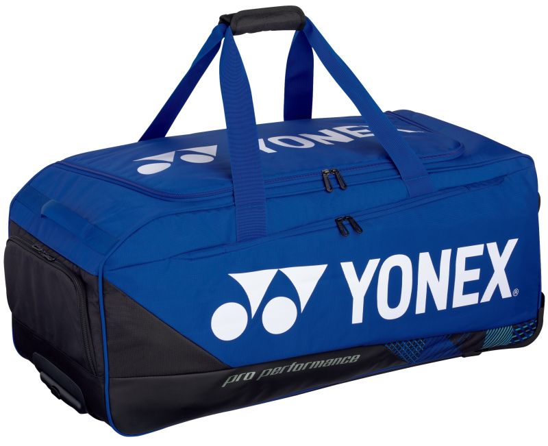 Теннисная сумка Yonex Pro Trolley Bag - cobalt blue. Необычайно вместительная и практичная сумка позволит легко разместить весь теннисный инвентарь. Имеет одну главную камеру, закрывающуюся на молнию, оснащенную сетчатыми органайзерами, облегчающими поддержание порядка внутри сумки. Усиленное дно обеспечит защиту хранимым вещам. Две внешние карманы для аксессуаров, закрывающиеся на молнии. Две ручки для переноски с возможностью соединения, а также ручка для установки в вертикальное положение. Скрытая телескопическая ручка и колеса позволяют не беспокоиться о весе багажа и обеспечивают комфортную транспортировку.