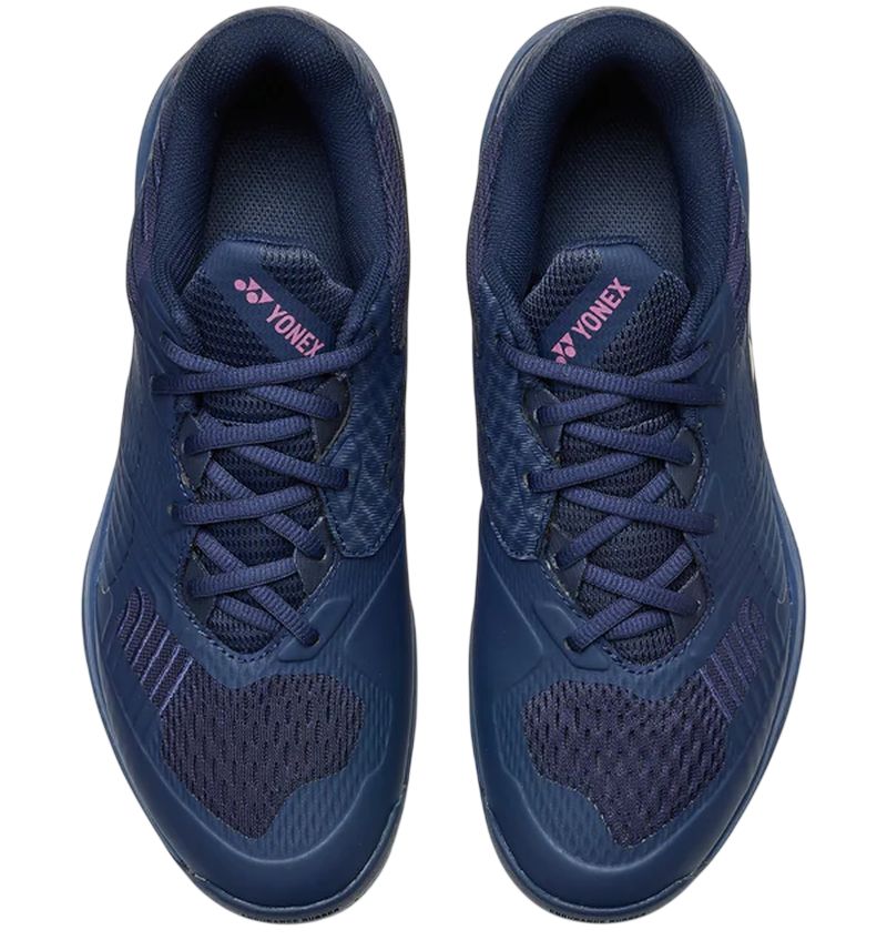 Теннисные кроссовки Yonex Power Cushion Sonicage Wide - dark navy. Легкая и комфортная модель в версии Wide, с расширенным кроем. Модифицированный верх обеспечивает еще лучшие характеристики, особенно в плане стабилизации стопы. Зоны mesh-панели обеспечивают повышенную воздухопроницаемость, что повышает комфорт во время игры. В ключевых местах применены специальные усиления. Отличная амортизация благодаря признанной технологии POWER CUSHION +. Язычок частично выполнен из mesh-панели и частично интегрирован с верхом, что позволяет добиться лучшего прилегания и обеспечивает дополнительную поддержку стопы. Применены следующие технологии: ROUND SOLE, TOE ASSIST SHAPE, DURABLE SKIN, POWER GRAPHITE, ENDURANCE RUBBER. Обувь имеет универсальную подошву с системой non-marking.