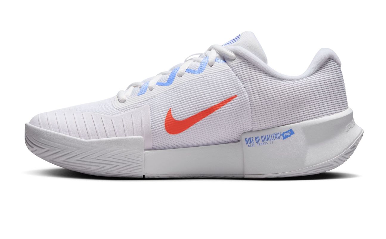 Женские теннисные кроссовки Nike Zoom GP Challenge Pro - white/light wild mango/royal pulse. Модель разработана на основе ценимых игроками характеристик кроссовок Nike Air Zoom GP Turbo. Позволяет справляться с агрессивными движениями на корте, обеспечивая скорость и поддержку без ущерба для комфорта. Оснащена единицей ZOOM AIR, расположенной под пяткой, которая обеспечивает больше динамики при подбеге к удару и дополнительно стабилизирует пятку. Мягкая пена под передней частью стопы гарантирует амортизацию высшего класса. Верх из синтетической сетки и частично интегрированный язычок из сетчатого материала улучшают вентиляцию и посадку на стопу. Прочная резиновая внешняя подошва усилена в местах, особенно подверженных износу, и имеет более широкую основу, увеличивающую стабильность при движении. Модель с универсальной подошвой.