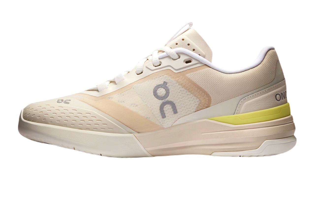 Женские теннисные кроссовки On The Roger ADV Pro - cream/limelight. Необычайно быстрый и динамичный модель, сочетающий лёгкость и высочайший комфорт ношения с уникальным дизайном в спортивном уличном стиле, характерном для sneakers марки On. Верх из вентилируемой, устойчивой к повреждениям сетки вместе с язычком, имеющим частично интегрированную конструкцию и перфорации, обеспечивает отличную воздухопроницаемость и чрезвычайно надёжно удерживает стопу в обуви. Скрытые поддерживающие элементы в зоне пятки и среднестопья дополнительно повышают стабильность. Область пальцев и внутренняя часть обуви имеют резиновые усиления, улучшающие стойкость при скольжениях. Технология CloudTec, усиленная карбоновой пластиной Speedboard, расположенной под среднестопием, гарантирует амортизацию высшего класса и очень хорошую упругость шага благодаря эффективному возврату энергии, вкладываемой в движение. Обувь оснащена универсальной подошвой, которая подойдёт для любого типа покрытия.