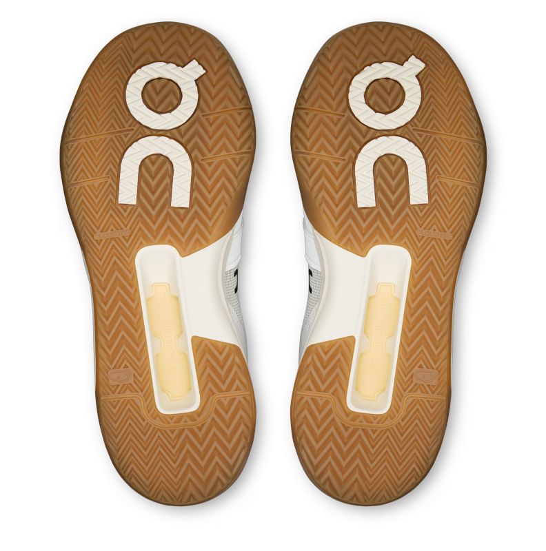 Женские теннисные кроссовки On The Roger Clubhouse Pro - white/ivory. Невероятно лёгкая и комфортная модель, сконструированная с мыслью о быстром перемещении по теннисному корту. Специально спроектированный сетчатый верх обеспечивает очень хорошую воздухопроницаемость, а облегающий крой - высокий уровень поддержки стопы. Зоны вокруг пятки и пальцев имеют усиления, повышающие прочность и стабильность, особенно при динамичных боковых движениях. Технология CloudTec, усиленная карбоновой пластиной Speedboard под средней частью стопы, обеспечивает отличную амортизацию и пружинистость шага благодаря эффективному возврату энергии, вкладываемой в движение. Образ дополняется классическим внешним видом с элементами ретро, вдохновлённым lifestyle-серией кроссовок бренда On. Кроссовки оснащены универсальной подошвой, гарантирующей при grip и долговечность на любом типе покрытия. Первый на польском рынке модель теннисной обуви On, созданный в сотрудничестве с Roger Federer!