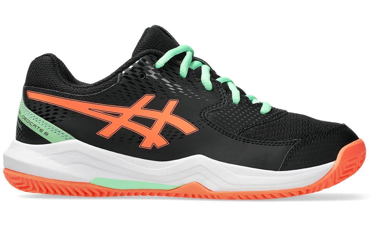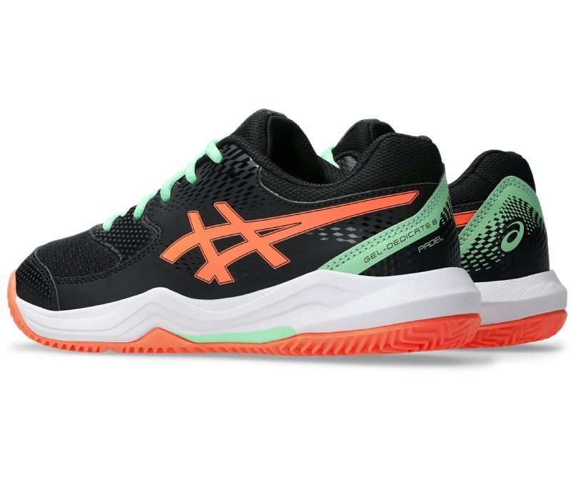 Детские кроссовки для падела Asics Gel-Dedicate 8 Padel GS - black/vivid coral. Модель, сочетающая хорошую амортизацию и стабилизацию с высокой прочностью. Это обувь с более узкой, идеально облегающей стопу посадкой. Сетчатая передняя часть верха увеличивает воздухопроницаемость. Зоны, подверженные истиранию, укреплены накладками из синтетической кожи, что обеспечивает дополнительную поддержку стопы и хорошую износостойкость. Магазин tennis-24.ru предлагает только оригинальные модели, гарантируя высокое качество продукции. Система Forefoot GEL Cushioning System в средней подошве обеспечивает оптимальную амортизацию, а технология Trussticsystem повышает комфорт и боковую стабильность. Обувь оснащена подошвой, предназначенной для игры на падельных покрытиях или искусственной траве, с системой non-marking.