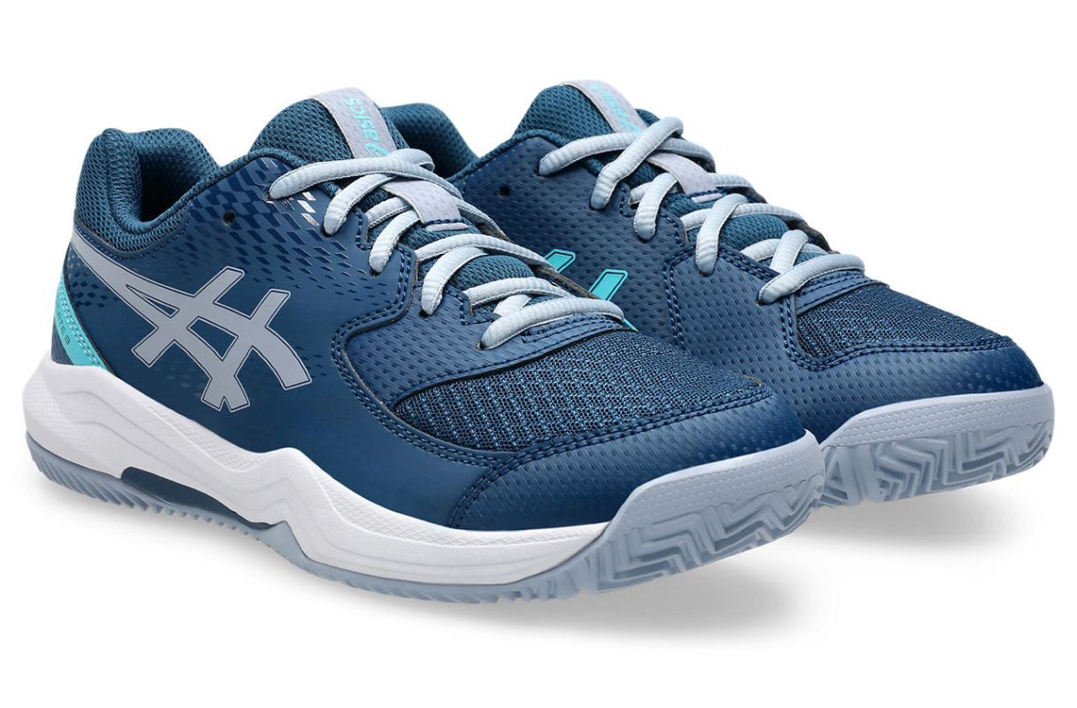 Детские кроссовки для Падел Asics Gel-Dedicate 8 Padel GS - mako blue/grey blue. Модель, сочетающая хорошую амортизацию и стабилизацию с высокой прочностью. Это обувь с более узкой, идеально облегающей стопу посадкой. Сетчатая передняя часть верха увеличивает воздухопроницаемость. Магазин tennis-24.ru предлагает только оригинальные модели с гарантией качества. Зоны, подверженные истиранию, укреплены накладками из синтетической кожи, что обеспечивает дополнительную поддержку стопы и хорошую износостойкость. Система Forefoot GEL Cushioning System в средней подошве обеспечивает оптимальную амортизацию, а технология Trussticsystem повышает комфорт и боковую стабильность. Обувь оснащена подошвой, предназначенной для игры на падельных покрытиях или искусственной траве, с системой non-marking.