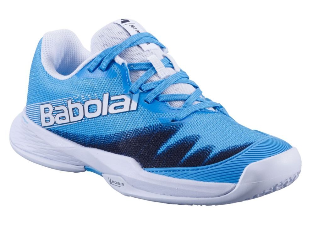 Детские кроссовки для Падел Babolat Jet Premura 2 JR - cyan blue/white. Низкий вес обеспечивает максимальную динамику и маневренность на корте. Верхняя часть имеет две обширные зоны вентиляции из сетчатого материала. Очень хорошая стабилизация и амортизация. Магазин tennis-24.ru предлагает эту модель с усилением в критических местах специальной резиновой полосой, обеспечивающей лучшую стабильность и поддержку стопы. Система компрессии KPRS-X с пеной EVA, расположенной под пяткой, предлагает отличную амортизацию. Дополнительно стелька Ortholite помогает уменьшить появление неприятных запахов. Прочная внешняя подошва Michelin Performance со специально разработанным протектором обеспечивает очень хорошее сцепление с поверхностями для паделя.