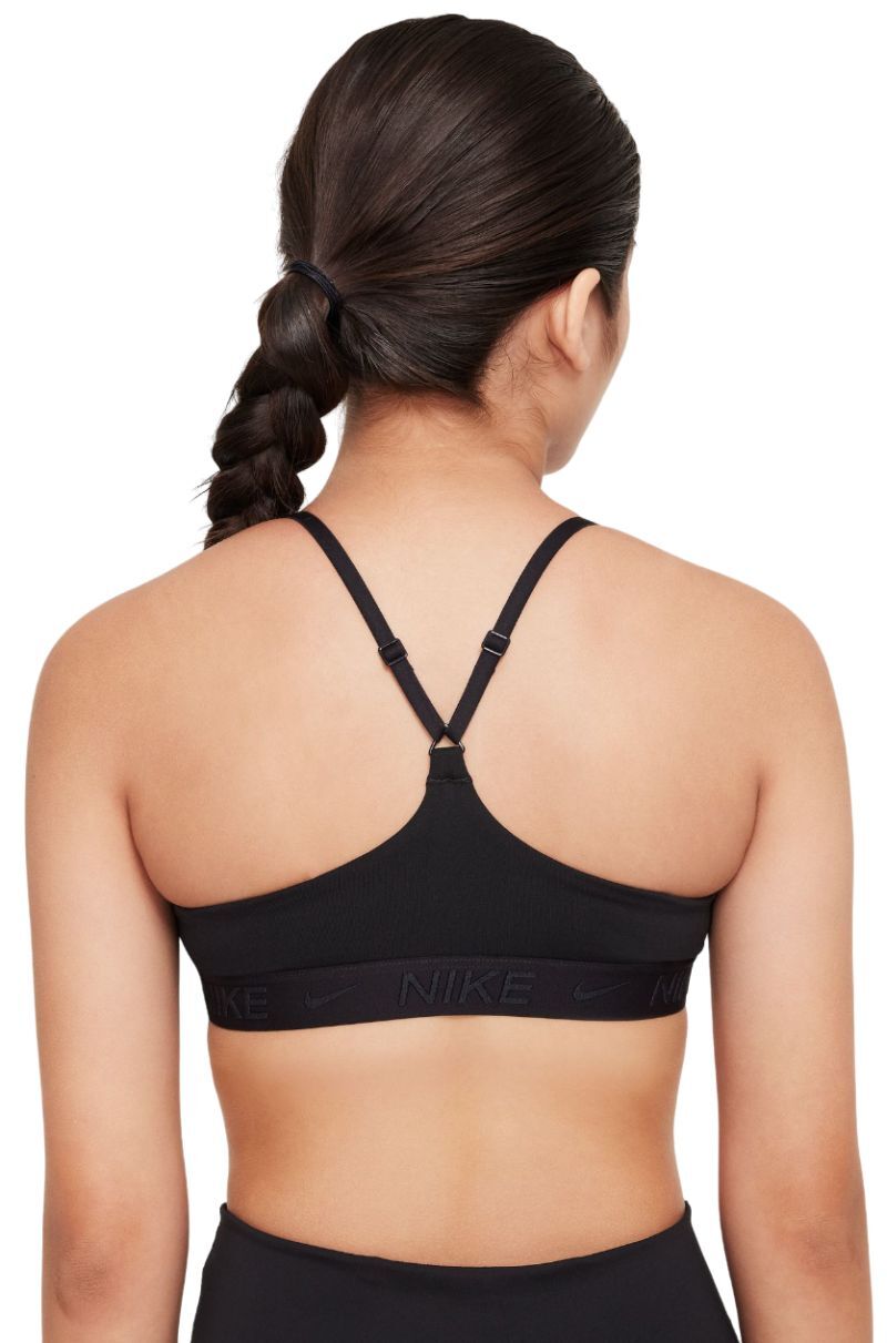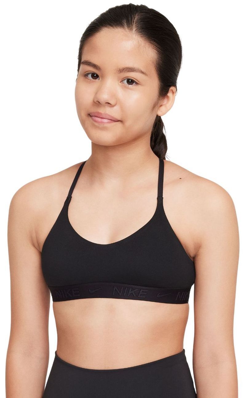 Детский спортивный бюстгальтер Nike Girls Indy с приталенным силуэтом обеспечивает плотное и комфортное облегание. Регулируемые эластичные бретели гарантируют удобство во время активных занятий. Надежная резинка под грудью улучшает фиксацию, а съемные уплотнённые чашечки добавляют дополнительную поддержку. Внутренняя подкладка из мягкой сетки способствует эффективной вентиляции. Изготовлен из дышащего материала с технологией DRI-FIT, которая помогает сохранять сухость и комфорт во время игры.