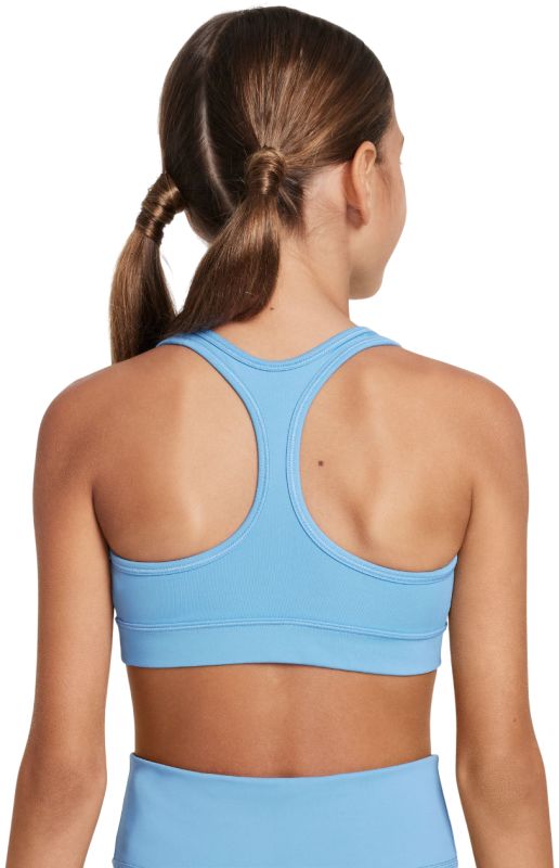 Детский теннисный бюстгальтер Nike Girls Swoosh Sports. Спортивный бюстгальтер облегающего кроя, идеально прилегающий к телу. Широкие, эластичные бретельки обеспечат комфорт во время активности. Прочная, широкая резинка под бюстом гарантирует хорошую посадку по фигуре. Теннисный бюстгальтер выполнен из мягкого, нежного материала, хорошо отводящего влагу. Примененные плоские швы минимизируют риск натирания и раздражения. Высокое качество изготовления и используемых материалов с применением технологии: DRI-FIT.