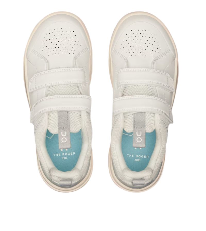 Детские теннисные кроссовки On The Roger Kids - white/glacier. Премиум-класс детская обувь, вдохновленная культовыми теннисными моделями для взрослых On. Разработана в характерном для швейцарского бренда минималистичном ретро-стиле, создана с мыслью о предоставлении молодым теннисистам максимального комфорта как на корте, так и в повседневной носке. Просторные петли на пятке и язычке, адаптированные к детской руке, а также застежки на липучке облегчают надевание и снятие. Верх выполнен из элегантной синтетической кожи. Имеет вентиляционные отверстия, повышающие воздухопроницаемость, и резиновый защитный кант, дополнительно оберегающий пальцы. Технология CloudTec с измененной конструкцией, которая активируется под меньшим весом, отлично амортизирует каждый шаг. Пластина Speedboard под средней частью стопы обеспечивает отличную поддержку и комфорт. Наружная подошва с эластичными зонами и специальными надрезами гарантирует естественный изгиб и упругость шага. Резиновая внешняя подошва от пятки до носка обеспечивает надежное сцепление на различных покрытиях.