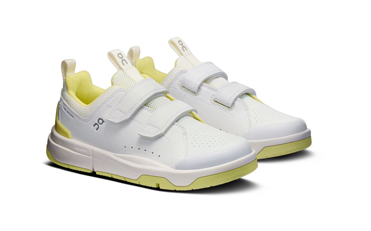 Детские теннисные кроссовки On The Roger Kids - white/limelight. Обувь премиум-класса для юниоров, вдохновленная культовыми теннисными моделями для взрослых On. Разработана в минималистичном ретро-дизайне, характерном для швейцарской марки, с целью обеспечения молодым теннисистам высочайшего комфорта как на корте, так и при ежедневном использовании. Просторные петли на пятке и язычке, адаптированные к детской руке, и застежки на липучке облегчают надевание и снятие. Верх выполнен из элегантной синтетической кожи с вентиляционными отверстиями для повышенной воздухопроницаемости и дополнительной резиновой защитой пальцев. Технология CloudTec с измененной конструкцией активируется под меньшим весом и отлично амортизирует каждый шаг. Пластина Speedboard под средней частью стопы обеспечивает отличную поддержку и комфорт. Наружная подошва с эластичными зонами и специальными надрезами гарантирует естественный изгиб и пружинистость шага. Резиновая внешняя подошва от пятки до пальцев обеспечивает надежное сцепление на различных покрытиях.